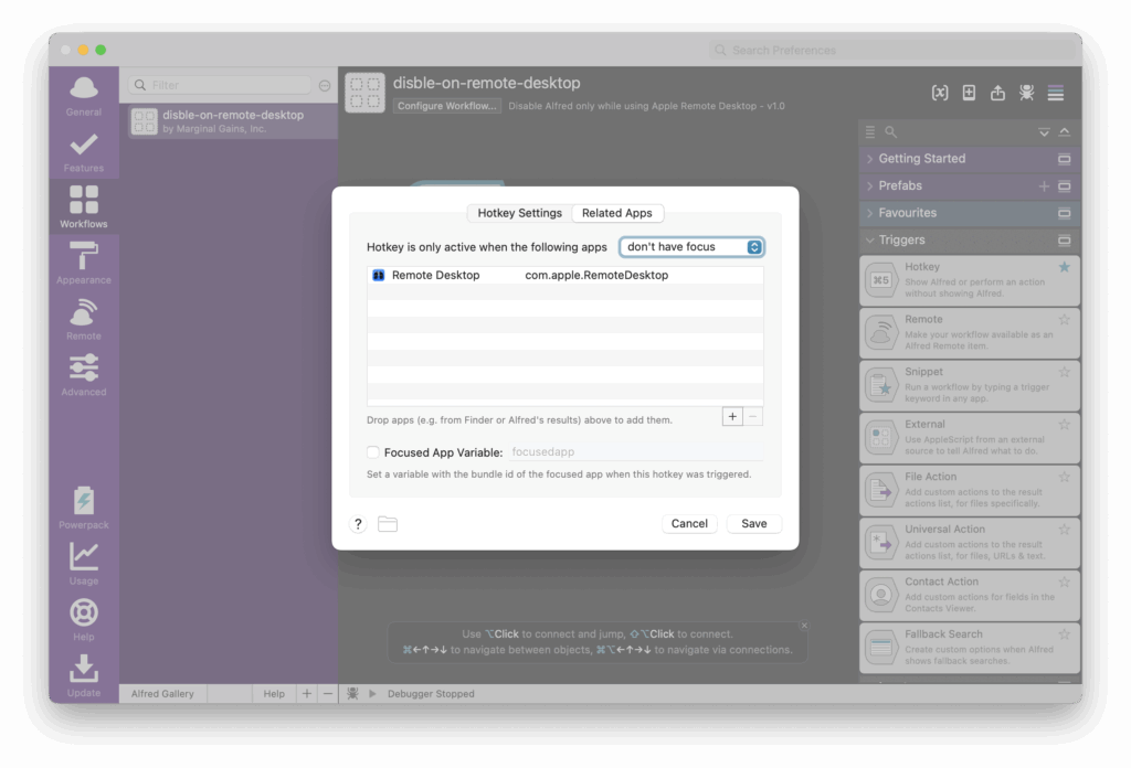 Hotkeyトリガーをクリックして、右側ペインの「Related Apps」タブを開きます。